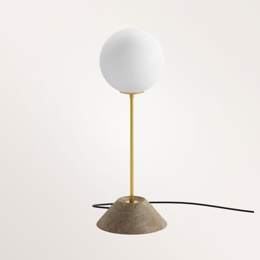 From this collaboration was born a lamp in which the respective materials of the 2 designers are found. Handturned porcelain stoneware and brass and glass for the light.