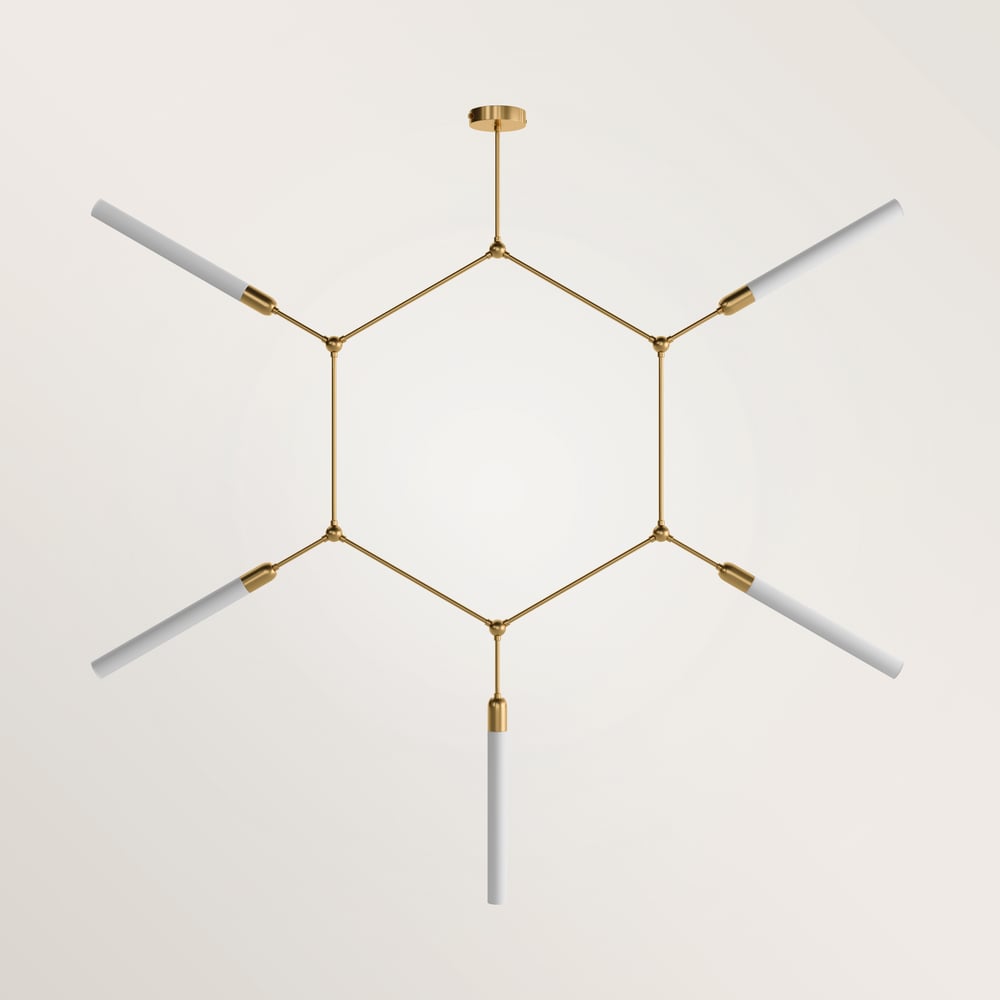 Brass and opal glass.